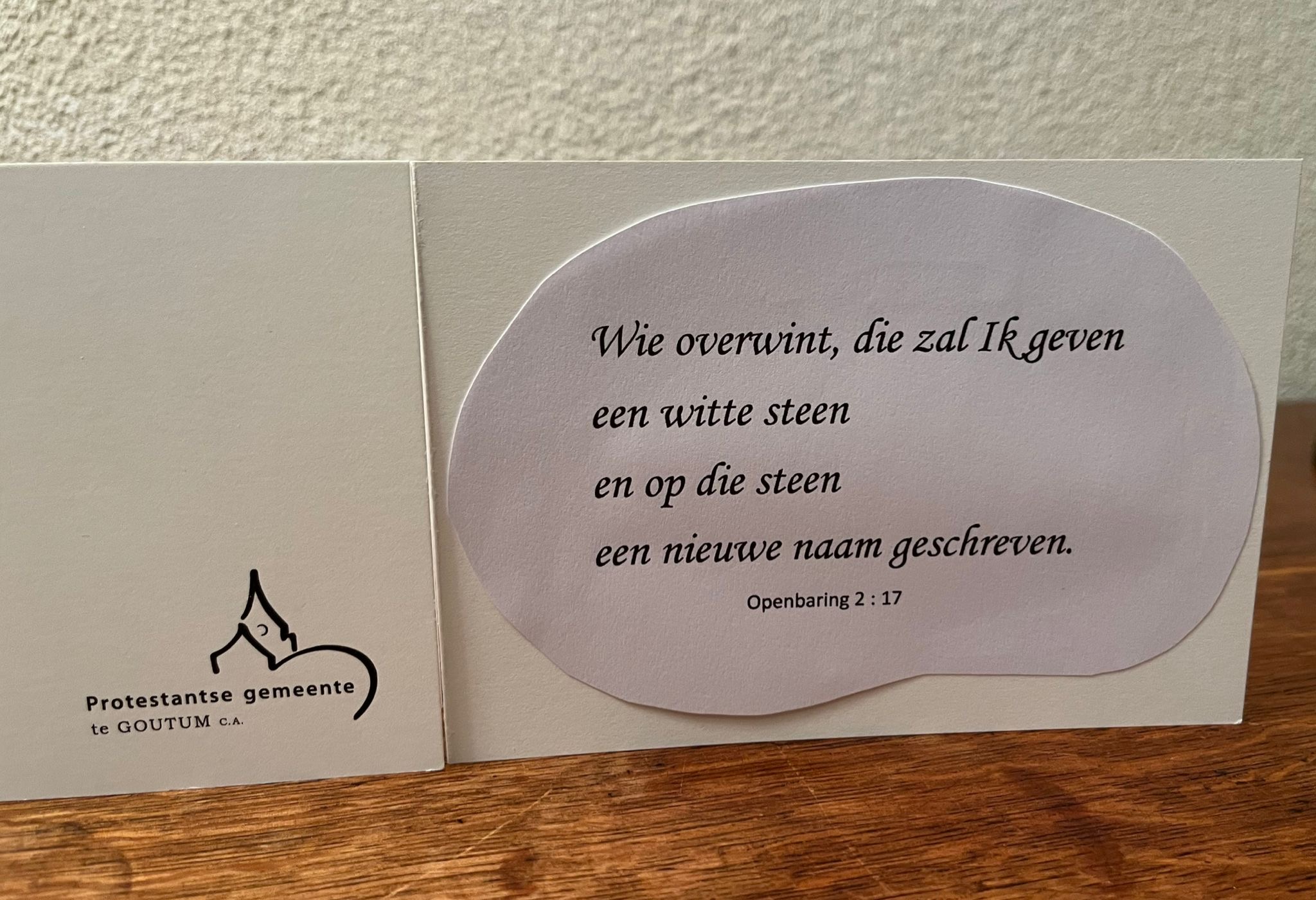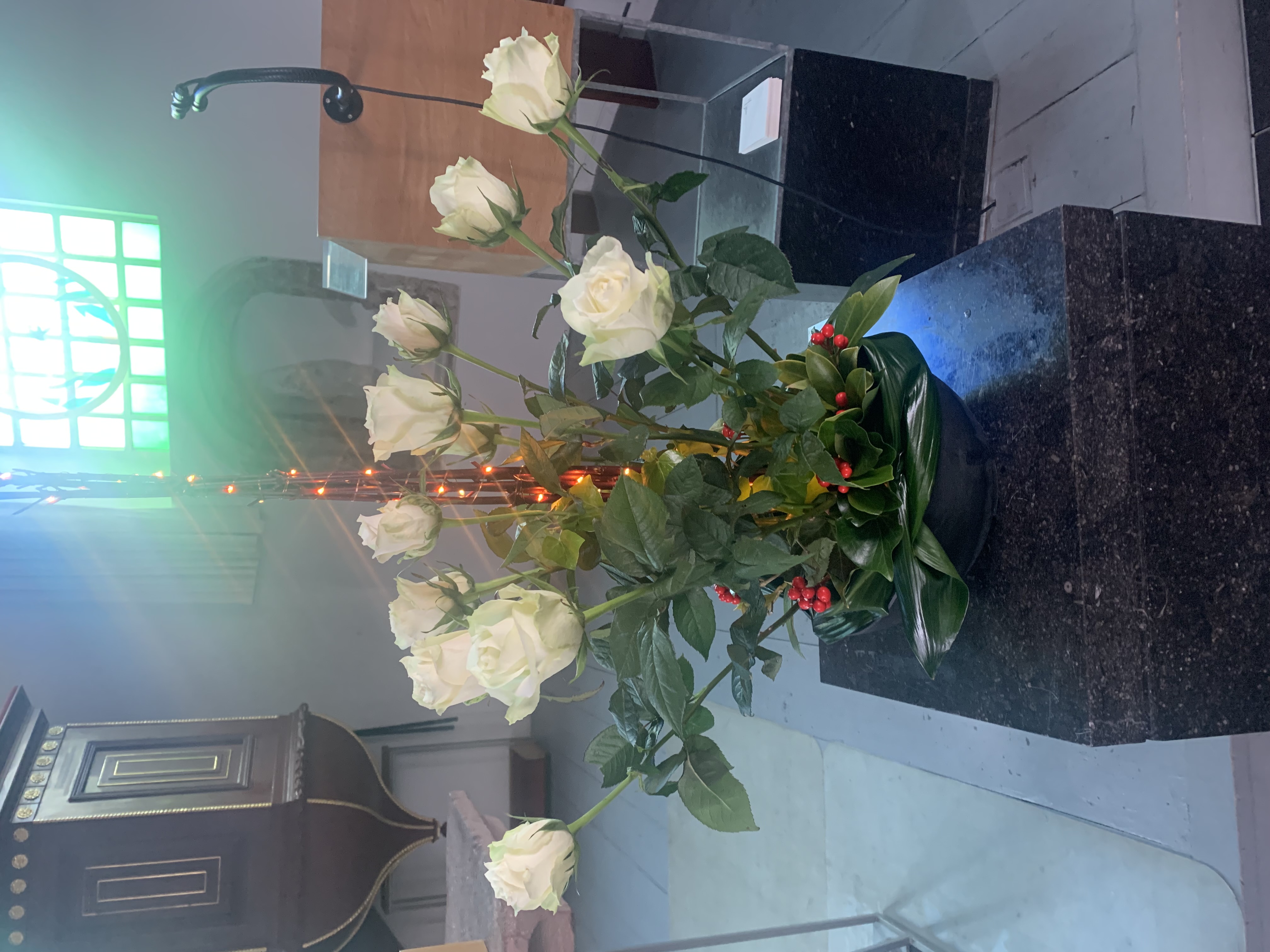 ![]() Zondag 23 november, op de laatste dag van het kerkelijk jaar, herdachten wij samen met de familie, de 12 gemeenteleden die ons het afgelopen jaar zijn ontvallen. In de bloemschikking 12 witte rozen - wit kleur van de hoop Er waren 12 kaarten met de tekst uit Openbaring 2:17 Wij noemen je naam