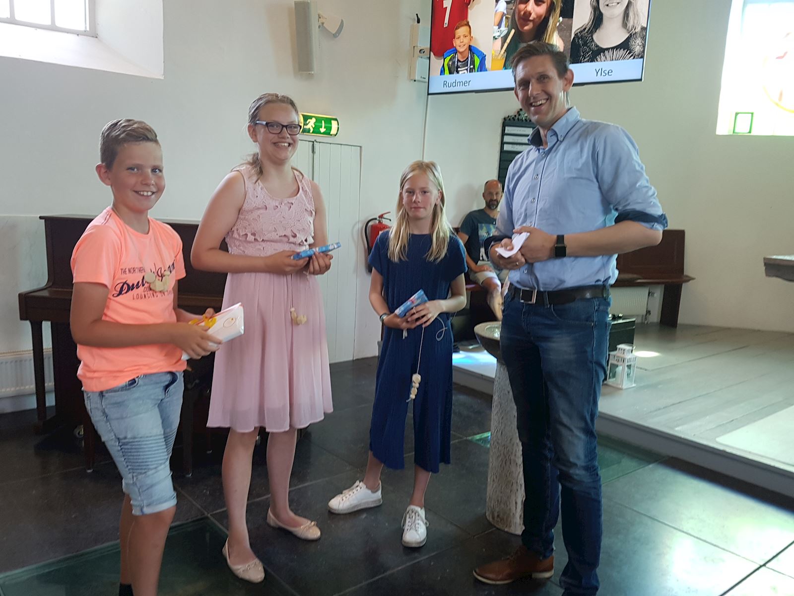 Op zondag 30 juni hebben Annie, Ylse en Rudmer afscheid genomen van de kindernevendienst. Zij zijn ´overgestapt´ naar Zuiderjoos. Daarnaast zijn Anna en Wouter uitgezwaaid, zij gaan in hun vakantie voor World Servants naar Ghana om aan scholen te bouwen. Meer foto´s van deze feestelijke dienst zijn te zien in het fotoalbum.