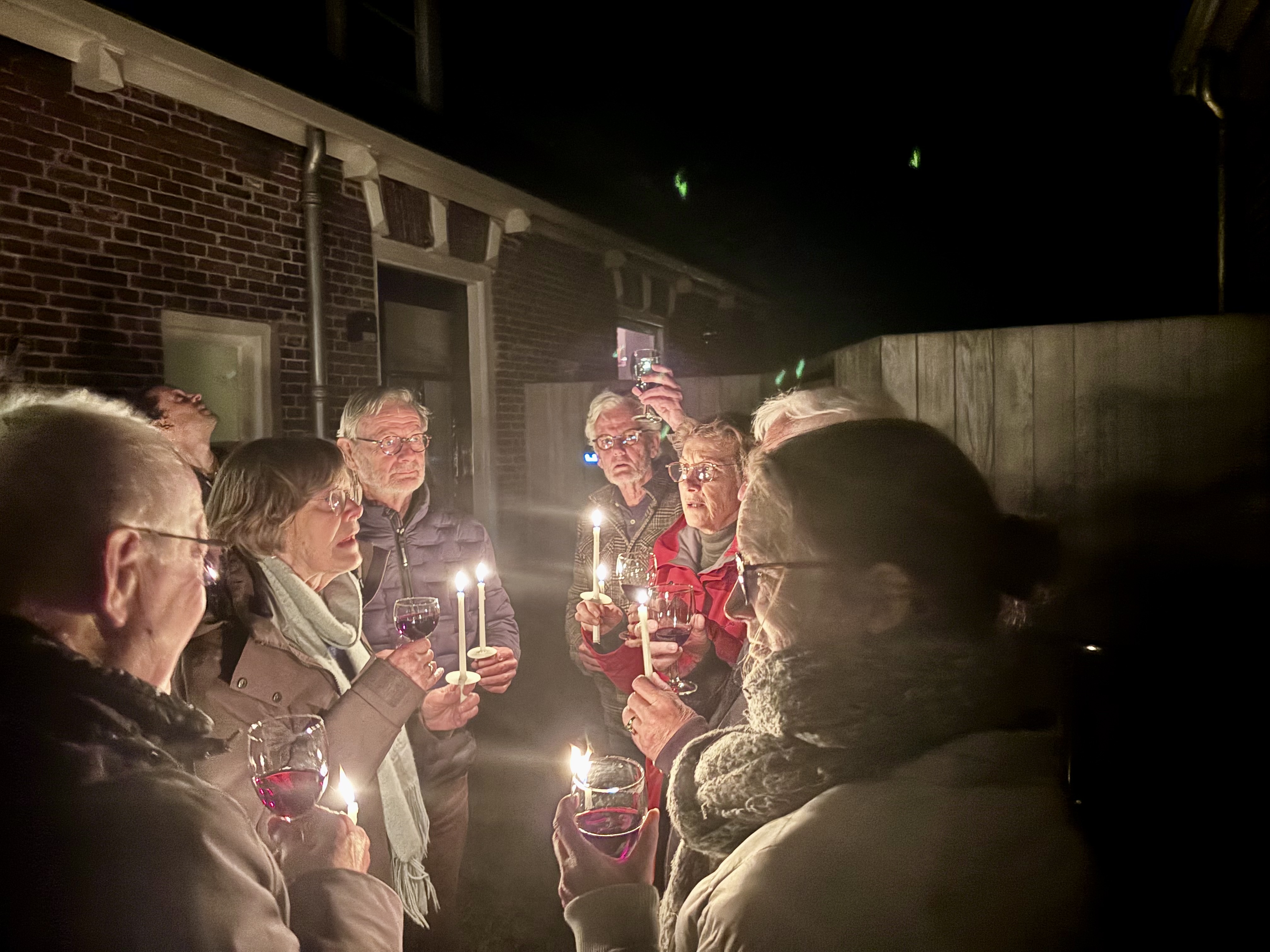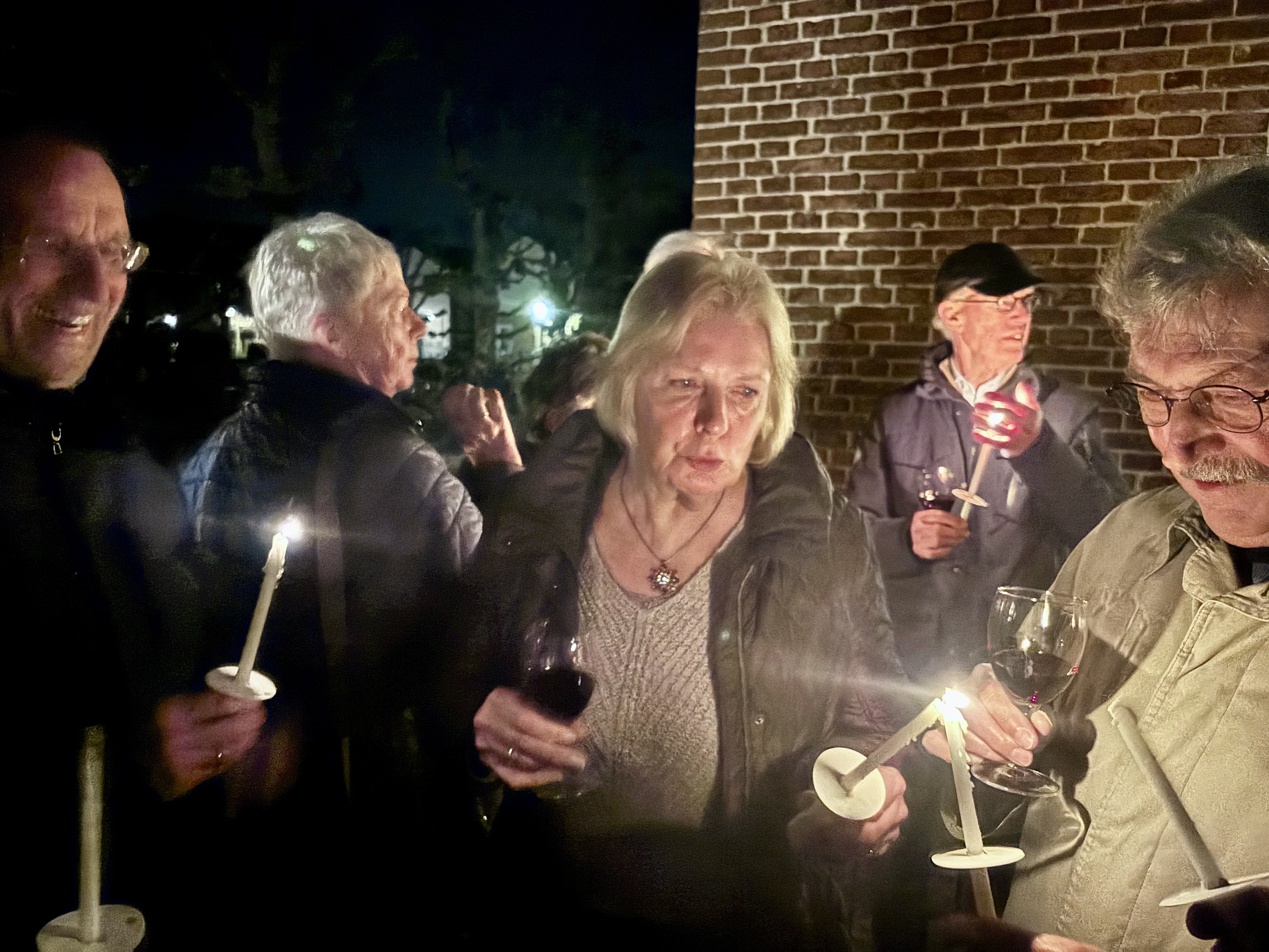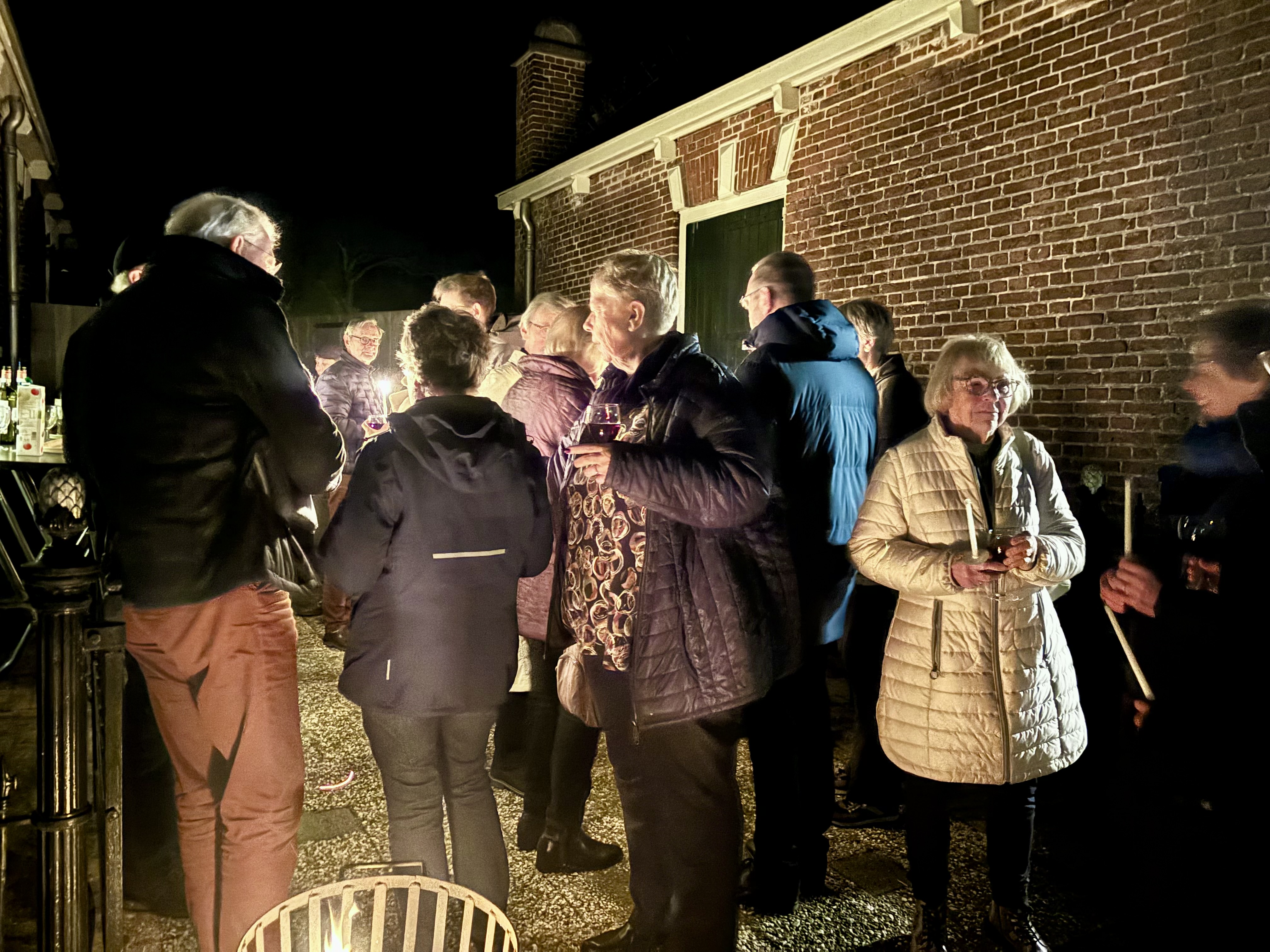 ![]() ![]() ![]() Na afloop van de Paaswake wensten wij buiten bij het open vuur en met een glas wijn elkaar gezegende Paasdagen toe! | ||